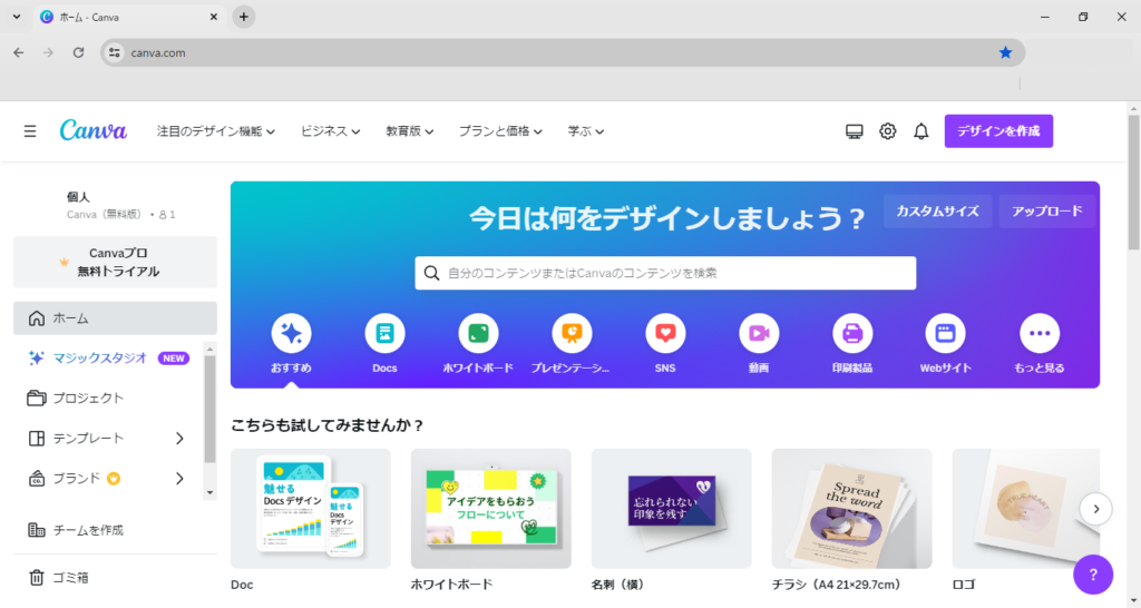 【キャンバ TOPページ】https://www.canva.com