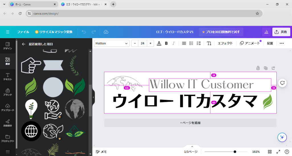 元々、デザイン関連はあまり得意な分野ではないのですが、あらかじめ用意されている「文字フォント」や「アイコン画像」を組み合わせながらロゴを作成しました。